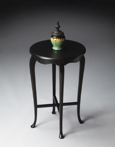 This Queen Anne-inspired table proves that good things do come in small packages. Featuring four cabriole legs with a criss-cross stretcher, its scale makes it an excellent addition to virtually any space. Crafted from selected solid woods, wood products and choice veneers, it has a matched cherry veneer top. Dimensions: 16"Diam., 26"H