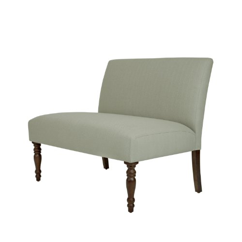 The angelo:HOME collection was designed by Angelo Surmelis, creator of a new generation of modern classic furniture that combines modern lines with traditional details. Turned wooden legs with a traditional walnut finish. Gently tapered back and legs give the Bradstreet armless settee an elegant feel. Covered in a washed light gray clay earth poly linen. 100-Percent polyester. Smaller scale offers generous seating comfort. Seats two comfortably. Perfect for the living room, dining room or office decor, the scale of these pieces coordinate well in any room environment. Mixed hardwood frame. Flame resistant foam and fiber fill seating. Efficient product design uses less fossil fuel based components in construction and delivery. Break it back down to recycle at the end of use for additional peace of mind. Ships in one (1) box. Some assembly required with supplied tool. Takes less than 15 minutes to assemble. Imported.
